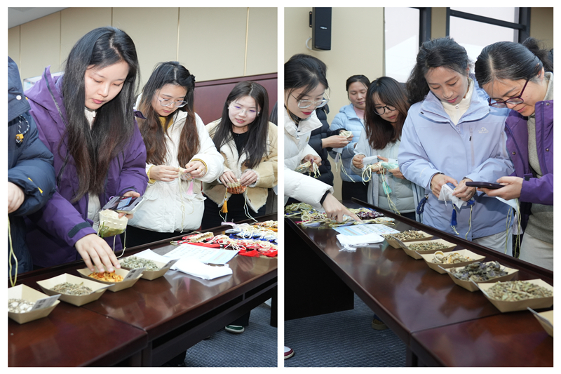 在春日養生香囊手作環節中,大家于指尖中感受非遺文化魅力,寄托對生活的熱愛和對健康的期許。藥香與歡笑交織,收獲一份專屬的春日記憶。