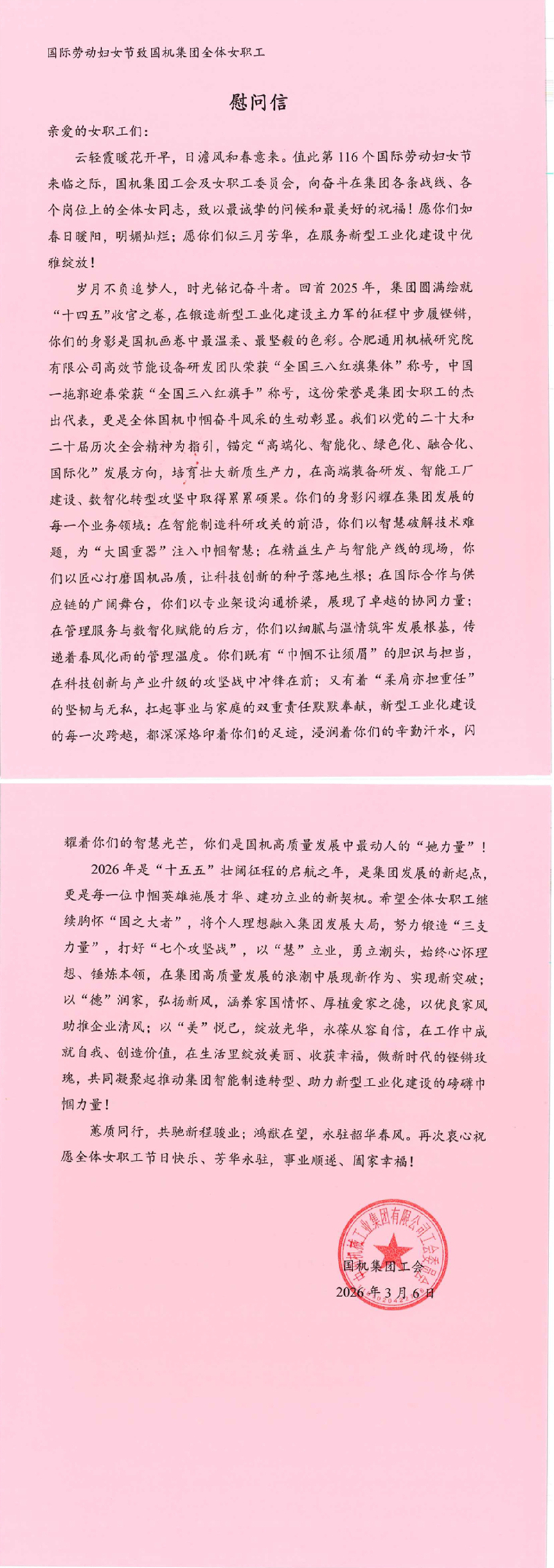 國機集團工會2026年“三八”國際勞動婦女節慰問信